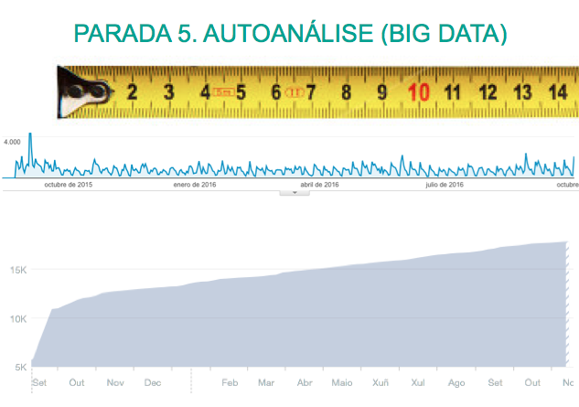 O seguinte paso foi analizar os nosos datos, os chamados Big Data. Ese grupo de cifras de tráfico, seguidores, retuits, comentarios, reputación dixital, número de usuarios e empresas da web… Xuntar todo iso para despois desglosalo, analizalo por seccións e aprender dos nosos erros.