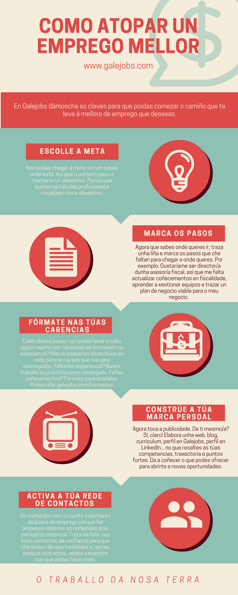 Aquí tes unha infografía cos pasos que debes seguir para comezar a abrirte ás novas oportunidades profesionais que poden surxir e, sobre todo, ser consciente delas.