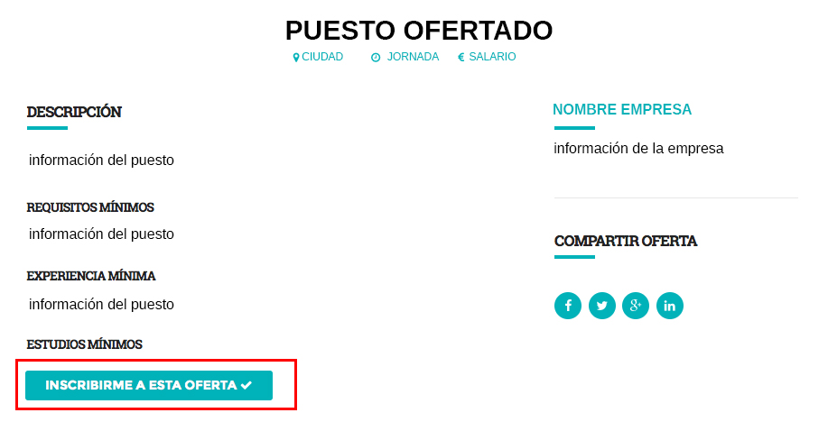 É dicir: A forma de comunicarte coa empresa é que pulses Inscribirme na súa oferta, para que saiban do teu interese polo posto e poidan valorar o perfil para a vacante.